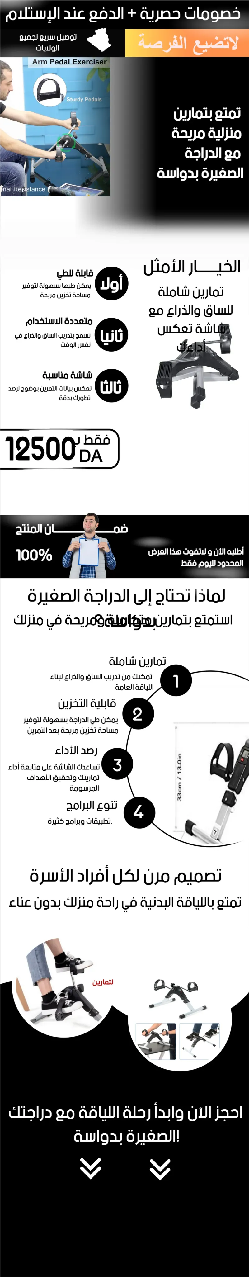 دراجة تمارين منزلية صغيرة بدواسة لتمارين الساق والذراع قابلة للطي مزود بشاشة مناسبة للرجال والنساء