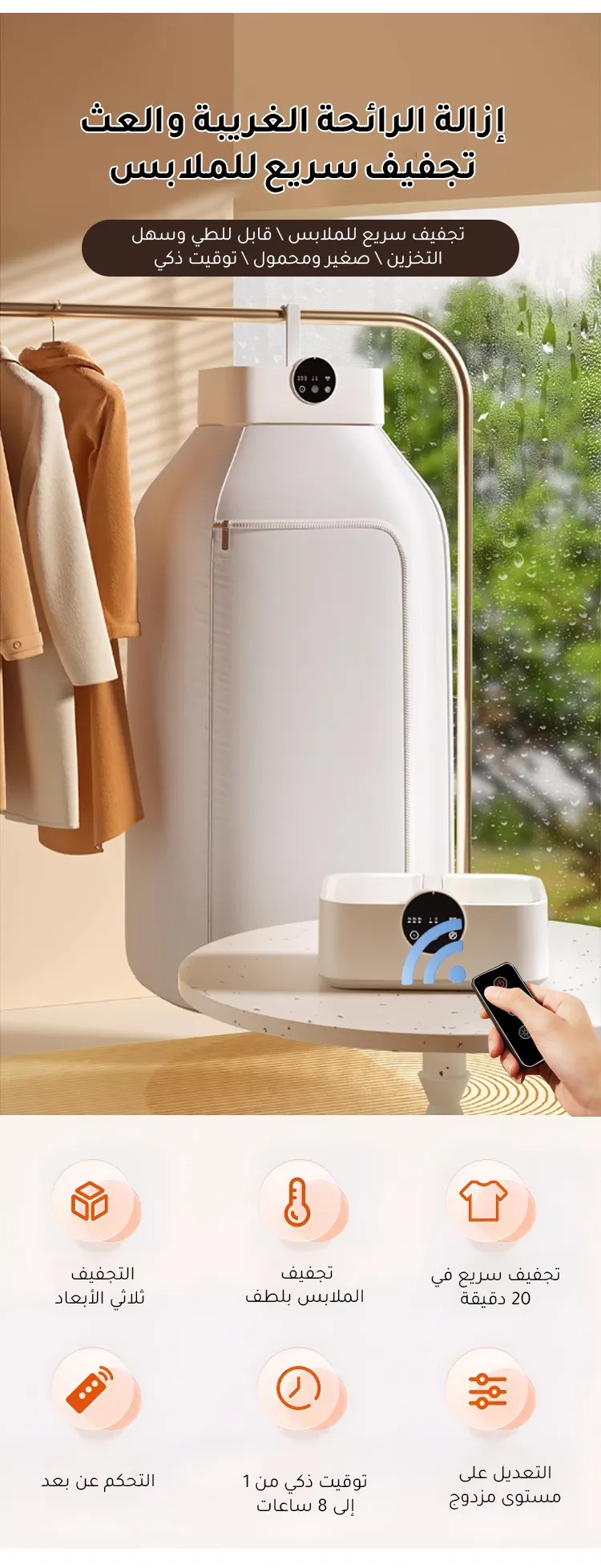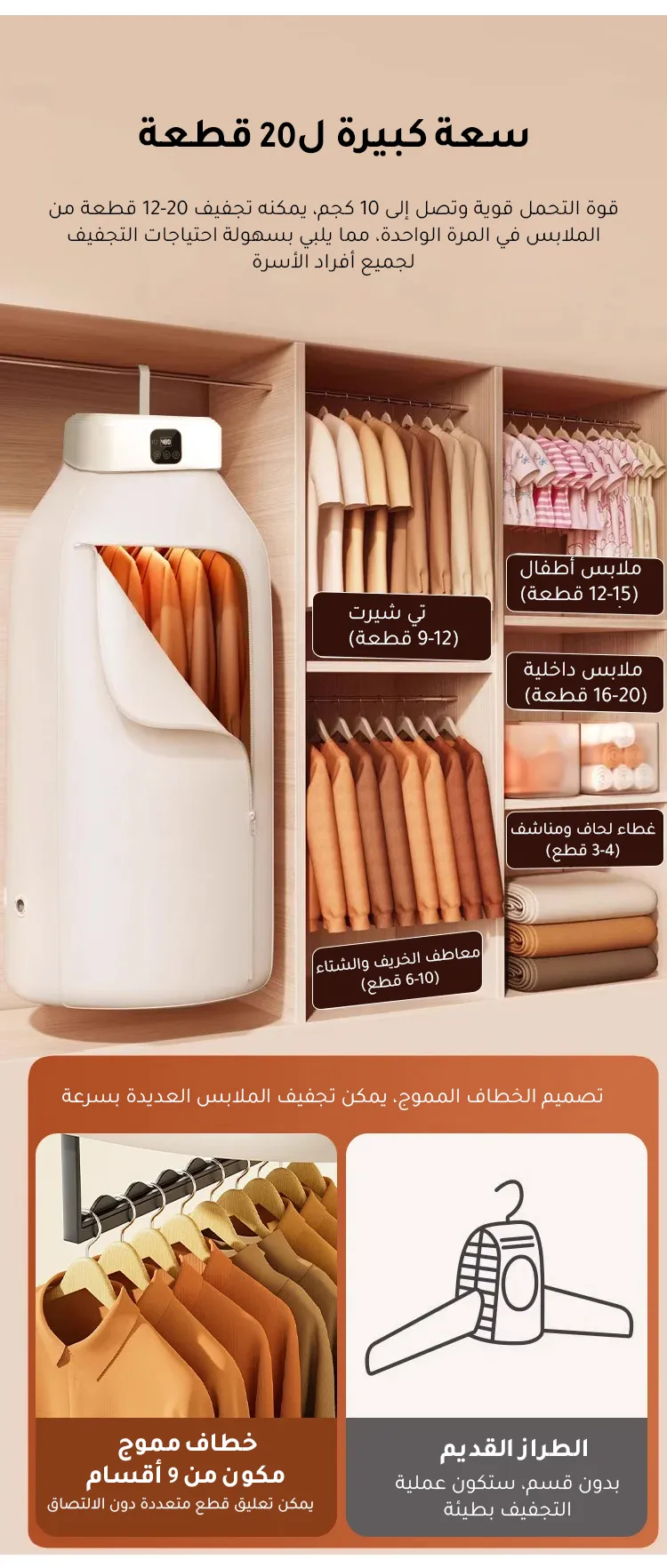 مجفف قابل للطي ذكي ومريح وسريع الجفاف