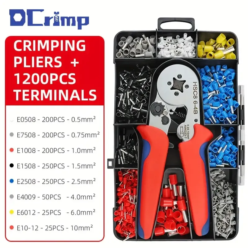 اداة للتثبيت ذاتية الضبط لرؤوس الأسلاك مع مجموعة وصلات كهربائية 1200قطعة