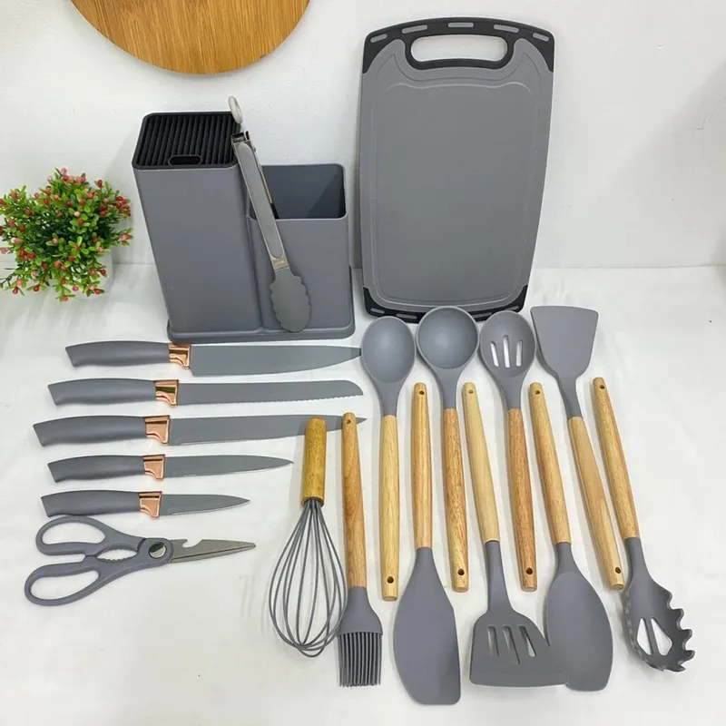 مجموعة أدوات مطبخ من السيليكون الفاخر، مكونة من 19 قطعة،